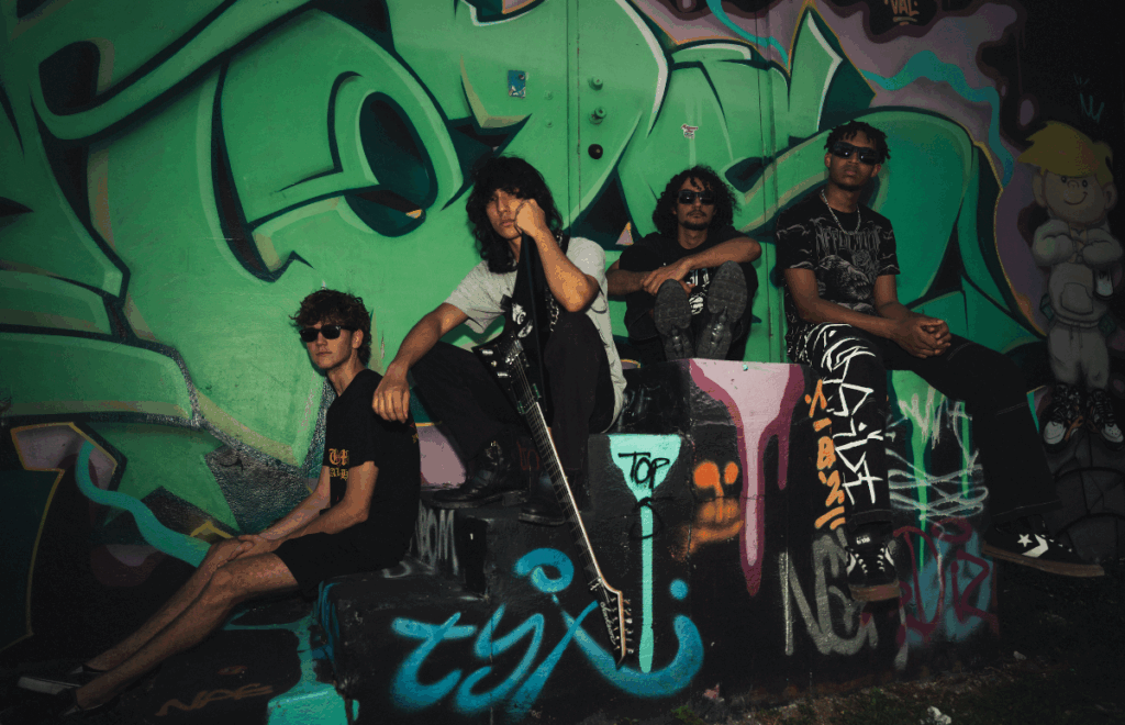 Chained Saint are barely out of high school, but they’re already making waves. The four piece consisting of Ethan Kahn (guitar), Sebastian De Avila (bass), Cameron Cottrell (drums), and Sean Sterling (vocals), built their name the old school way, starting in garages, hitting local stages, and slowly working their way into festival line-ups.