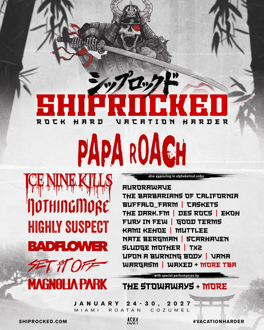 Papa Roach frontman Jacoby Shaddix said, “We’ve had some unforgettable moments on ShipRocked, and the 2027 edition will bring even more. We’ll see you ShipRockers out on the high seas!”