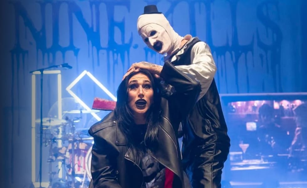 During Ice Nine Kills’ set on Saturday (Sept 13) in Worcester, Massachusetts, Ripley stormed the stage to a massive crowd reaction. The moment escalated when Art the Clown appeared, snatched Ripley’s Labubu plush, and provoked a fight. Ripley slapped Art, who struck back, sending her crashing to the floor. In true Terrifier fashion, Art finished the job with a cleaver before faux medical staff rushed in to cart away Ripley’s “body.”