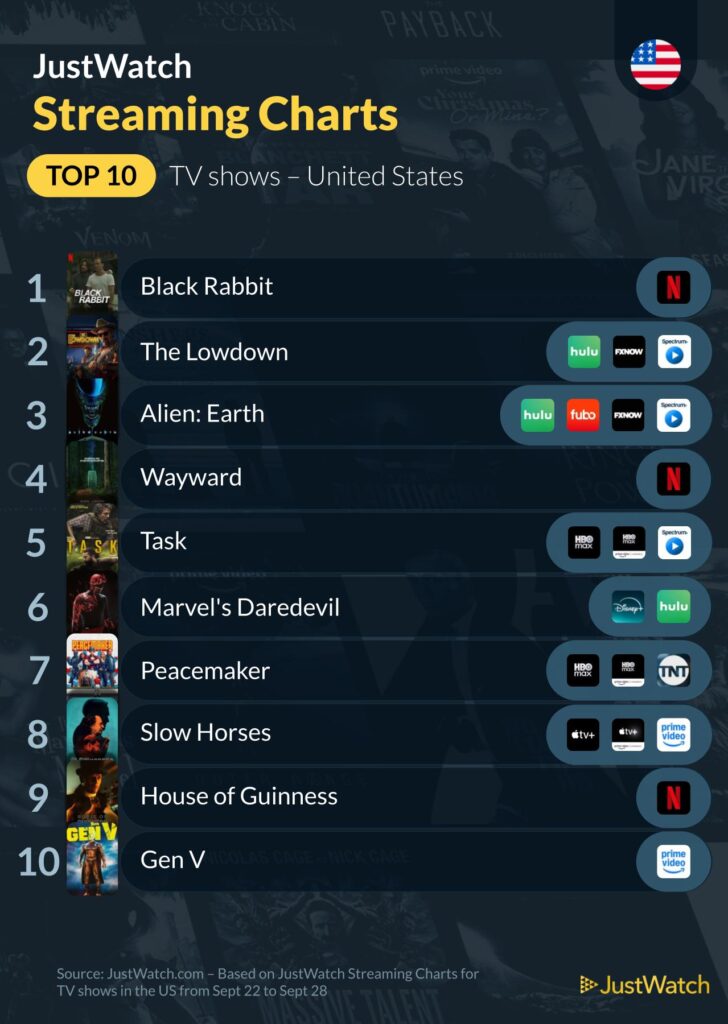 The newest JustWatch streaming charts are in for September 22–28, and the U.S. audience has doubled down on both gritty thrillers and apocalyptic horror. With Netflix’s Black Rabbit refusing to budge from the top of the TV rankings and 28 Years Later tearing through the movie charts, it’s a week where shadows and sequels took the crown.
